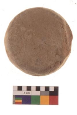 | Description / विवरण | Specimen of roughly rounded terracotta cake. It is hand-made with well-levigated clay. It is having flat rough surface and reddish in colour. It is coarse and ill fired. |
