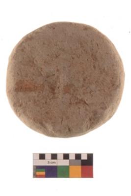| Description / विवरण | Specimen of roughly rounded terracotta cake. It is hand-made with well-levigated clay. It is having rough surface and reddish in colour. It is coarse and ill fired. |