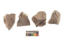 | Description / विवरण | There are n 4 utilized flakes. There are multi directional irregular scar pattern on both dorsal and ventral face of the flakes. two are tapering at one end and two have sharp edges. |