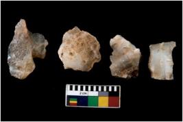 | Description / विवरण | There are n 4 ; worked utilized flakes; there are multidirectional irregular scar pattern on both dorsal and ventral face of the flakes. All are having sharp edges. |