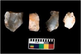| Description / विवरण | There are n 4 ; worked utilized flakes; there are multidirectional irregular scar pattern on both dorsal and ventral face of the flakes. All are having sharp edges. |