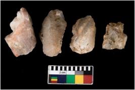 | Description / विवरण | There are n 4 ; worked utilized flakes; there are multidirectional irregular scar pattern on both dorsal and ventral face of the flakes. All are having sharp edges. |