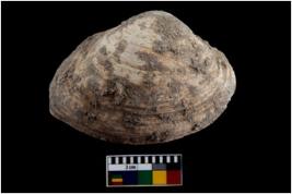 | Description / विवरण | Specimen of a large bivalve marine shell with sharp edge. Probably use as spoon. |