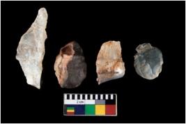| Description / विवरण | There are n 4 ; worked utilized flakes; there are multidirectional irregular scar pattern on both dorsal and ventral face of the flakes. All are having sharp edges. |