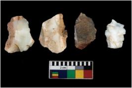 | Description / विवरण | There are n 4 ; worked utilized flakes; there are multidirectional irregular scar pattern on both dorsal and ventral face of the flakes. All are having sharp edges. |