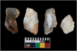 | Description / विवरण | There are n 4 ; worked utilized flakes; there are multidirectional irregular scar pattern on both dorsal and ventral face of the flakes. All are having sharp edges. |