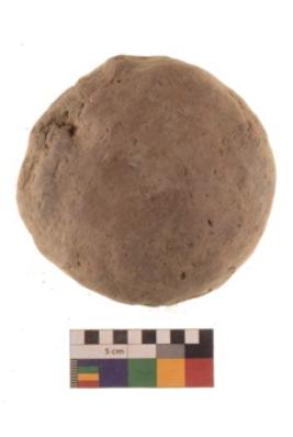 | Description / विवरण | Specimen of roughly rounded terracotta cake. It is hand-made with well-levigated clay. It is having rough surface and reddish in colour. It is coarse and ill fired. |