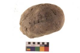 | Description / विवरण | Specimen of roughly oval shaped terracotta cake. It is hand-made with well levigated clay.It is coarse and ill fired. |