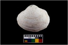 | Description / विवरण | Specimen of a large bivalve marine shell with ground edge. Probably use as spoon. |