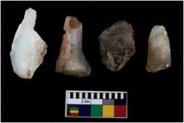 | Description / विवरण | There are n 4 ; worked utilized flakes; there are multidirectional irregular scar pattern on both dorsal and ventral face of the flakes. All are having sharp edges. |