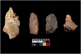 | Description / विवरण | There are n 4 cores; there are multidirectional irregular scar pattern on them. The reverse bulb and platform can be seen. |