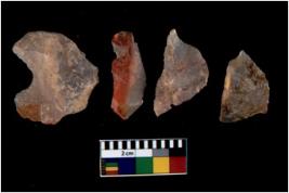 | Description / विवरण | There are n 4 utilized flake cores. There are multi directional irregular scar pattern on them. Two are tapering at one end and two have blunted edges. |