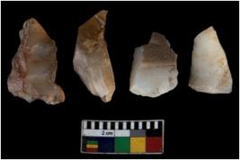 | Description / विवरण | There are n 4 ; worked utilized flakes; there are multidirectional irregular scar pattern on both dorsal and ventral face of the flakes. All are having sharp edges. |