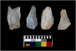 | Description / विवरण | There are n 4 utilized flake cores. There are multi directional irregular scar pattern on them. All of them are tapering at one end. |