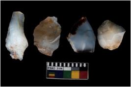 | Description / विवरण | There are n 4 ; worked utilized flakes; there are multidirectional irregular scar pattern on both dorsal and ventral face of the flakes. All are having sharp edges. |