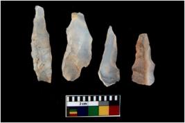 | Description / विवरण | There are n 4 utilized flake cores. There are multi directional irregular scar pattern on them. Three are tapering at one end and one has sharp edge. |