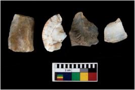 | Description / विवरण | There are n 4 ; worked utilized flakes; there are multidirectional irregular scar pattern on both dorsal and ventral face of the flakes. All are having sharp edges. |