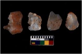 | Description / विवरण | There are n 4 cores. There are multi directional irregular scar pattern on both dorsal and ventral face of the cores. Some have blunted edges and some have round edges. |