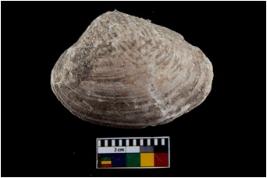 | Description / विवरण | Specimen of a large bivalve marine shell with sharp edge. Probably use as spoon. |