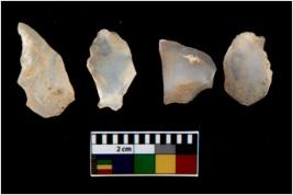 | Description / विवरण | There are n 4 utilized flake cores. There are multi directional irregular scar pattern on them. One is tapering at one end and three have blunted edges. |