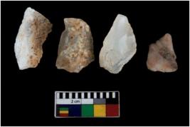 | Description / विवरण | There are n 4 ; worked utilized flakes; there are multidirectional irregular scar pattern on both dorsal and ventral face of the flakes. All are having sharp edges. |