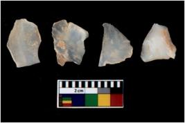 | Description / विवरण | There are n 4 utilized flake cores. There are multi directional irregular scar pattern on them. One has sharp edge and three have blunted edges. |