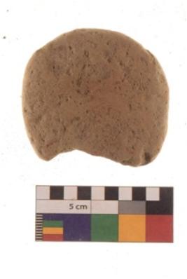| Description / विवरण | Specimen of roughly rounded terracotta cake. It is hand-made with well-levigated clay. It is having rough surface and reddish in colour. It is coarse and ill fired. |