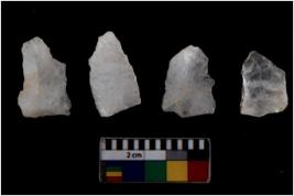 | Description / विवरण | There are n 4 flake cores. All of them are fully fluted flake cores without any trace of crested ridge flakes. Some are tapering at one end. Few have sharp edges while some have flat base. |