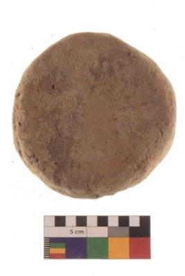 | Description / विवरण | Specimen of roughly rounded terracotta cake. It is hand-made with well-levigated clay. It is having rough surface and reddish in colour. It is coarse and ill fired. |