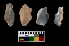 | Description / विवरण | There are n 4 utilized flake cores. There are multi directional irregular scar pattern on them. All of them are tapering at one end. |