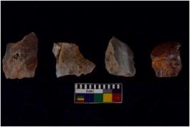| Description / विवरण | There are n 4 flake cores. All of them are fully fluted flake cores without any trace of crested ridge flakes. Some are tapering at one end and some have sharp edges. |