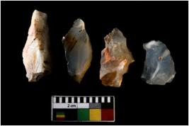 | Description / विवरण | There are n 4 ; worked utilized flakes; there are multidirectional irregular scar pattern on both dorsal and ventral face of the flakes. All are having sharp edges. |
