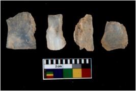| Description / विवरण | There are n 4 utilized flake cores. There are multi directional irregular scar pattern on them. Two have blunted edges and two have round edges. |