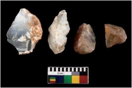 | Description / विवरण | There are n 4 ; worked utilized flakes; there are multidirectional irregular scar pattern on both dorsal and ventral face of the flakes. All are having sharp edges. |