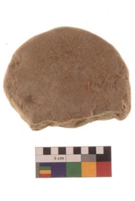 | Description / विवरण | Specimen of roughly rounded terracotta cake. It is hand-made with well-levigated clay. It is having rough surface and reddish in colour. It is coarse and ill fired. |
