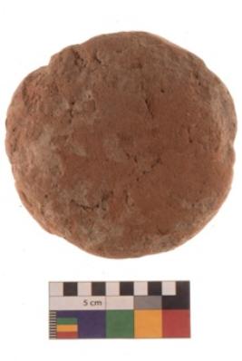 | Description / विवरण | Specimen of roughly rounded terracotta cake. It is hand-made with well-levigated clay. It is having rough surface and reddish in colour. It is coarse and well fired. |
