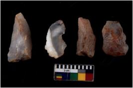 | Description / विवरण | There are n-4 of utilized flake cores. There are multidirectional irregular dominant scar pattern on both dorsal and ventral face of the cores. |