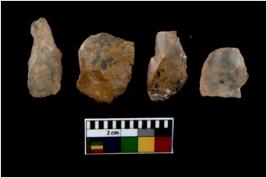 | Description / विवरण | There are n 4 utilized flake cores. There are multi directional irregular scar pattern on them. Two are tapering at one end and two have blunted edges. |
