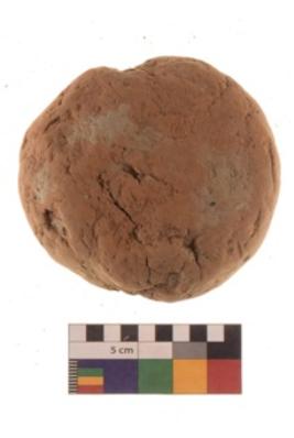 | Description / विवरण | Specimen of roughly rounded terracotta cake. It is hand-made with well-levigated clay. It is having rough surface and reddish in colour. It is coarse and well fired. |