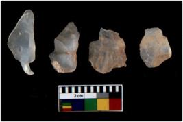 | Description / विवरण | There are n 4 utilized flake cores. There are multi directional irregular scar pattern on them. Two are tapering at one end and two have blunted edges. |