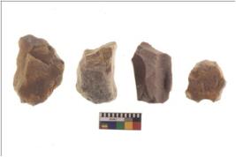 | Description / विवरण | There are n 4 of intact utilized cores. They are tapering at one end. They have sharp edges and show scar pattern. |
