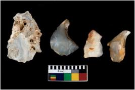 | Description / विवरण | There are n 4 ; worked utilized flakes; there are multidirectional irregular scar pattern on both dorsal and ventral face of the flakes. All are having sharp edges. |
