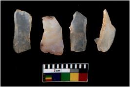 | Description / विवरण | There are n 4 utilized flake cores. There are multi directional irregular scar pattern on them. All of them are tapering at one end. |