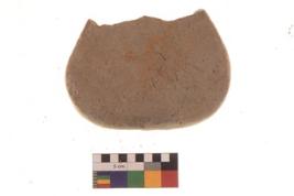 | Description / विवरण | Specimen of triangular terracotta cake. It is hand-made with well levigated clay. It is having rough surface and reddish in colour. It is coarse and well fired. |