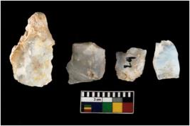| Description / विवरण | There are n 4 ; worked utilized flakes; there are multidirectional irregular scar pattern on both dorsal and ventral face of the flakes. All are having sharp edges. |