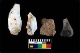 | Description / विवरण | There are n 4 ; worked utilized flakes; there are multidirectional irregular scar pattern on both dorsal and ventral face of the flakes. All are having sharp edges. |