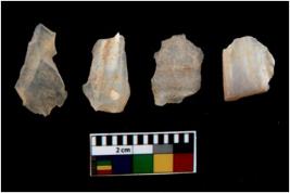 | Description / विवरण | There are n 4 utilized flake cores. There are multi directional irregular scar pattern on them. Two are tapering at one end and two have blunted edges. |