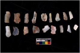 | Description / विवरण | There are n 20 flakes tool; there are multidirectional irregular scar pattern on them; made of short flakes and few have tapering edges. |