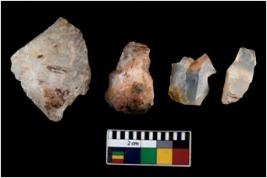 | Description / विवरण | There are n 4 ; worked utilized flakes; there are multidirectional irregular scar pattern on both dorsal and ventral face of the flakes. All are having sharp edges. |