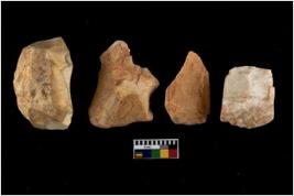 | Description / विवरण | There are n 4 flake cores. All of them are fully fluted flake cores without any trace of crested ridge flakes. |